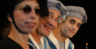 Ce spectacle de rue "Trium Virage" a un petit côté "Cirque d'antan". L'ambiance est celle du cinéma muet, sur une musique période "Cotton Club". Une vieille dame débarque à la plage avec deux chenapans qui font les pitres. Ils s'installent pour goûter, quand tout à coup la grand-mère s'étouffe avec un gâteau et tombe en syncope. Les garçons tentent par tous les moyens de la ranimer (numéro de poupée désarticulée). Après un passage magique dans une cabine de plage, nos trois compères se retrouvent en costumes de bain mais les enfants sont devenus adultes et la vieille dame a rajeuni. S'ensuivra un ballet aquatique "terrestre", pour terminer en numéro comique d'équilibres et portés.